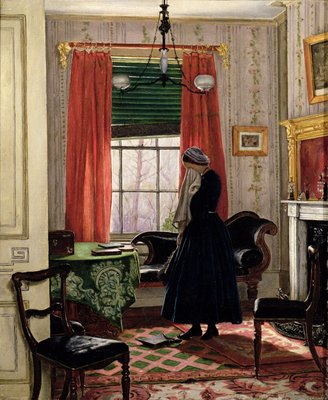 der erste ort · inländisch · innere · diener · maid · schaufel · mittelklasse · viktorianisch · weinen · weinend aufgeregt · erzählung · salon · zeichenraum · fenster · gemälde · frau · stehen · bedienung · knechtschaft · The Geffrye Museum of the Home, London, UK / Bridgeman Images