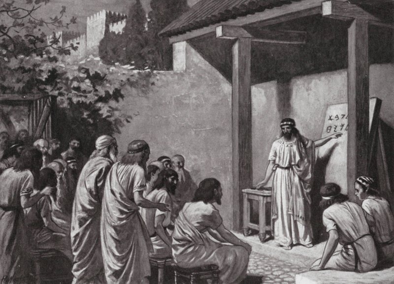Kadmos gibt den Griechen ein Alphabet(Cadmus gives the Greeks an Alphabet (litho))A.C. Weatherstone |