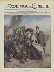 Prinzessin Laetitia rettet einen Bauern, der mit brennenden Kleidern entlang eines Weges lief(La Principessa Laetitia riesce a salvare un contadino che ardeva con le vesti in fiamme lungo uno ? )Achille Beltrame |