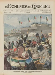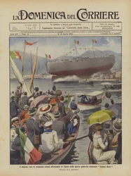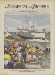 Der Stapellauf des großen Schlachtschiffs Regina Margherita in La Spezia am 30. Mai(Il Varo Della Grande Corazzata Regina Margherita Avvenuto Alla Spezia Il 30 Maggio )Achille Beltrame |