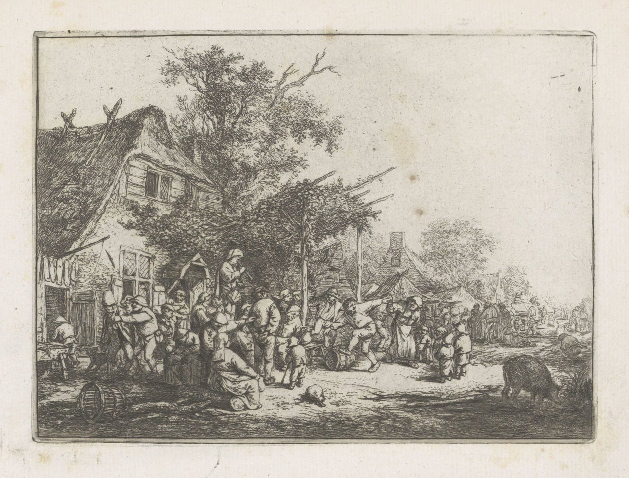 Dansende boeren voor een herberg(Dancing Peasants in Front of an Inn)Adriaen van Ostade(print maker),Adriaen van Ostade(after own design by) |