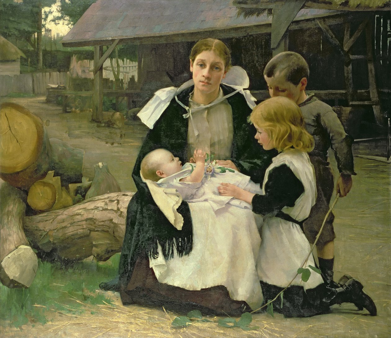 mutter · kind · kinder · tochter · sohn · junge · mädchen · holz · Schuppen · Private Collection / Bridgeman Images