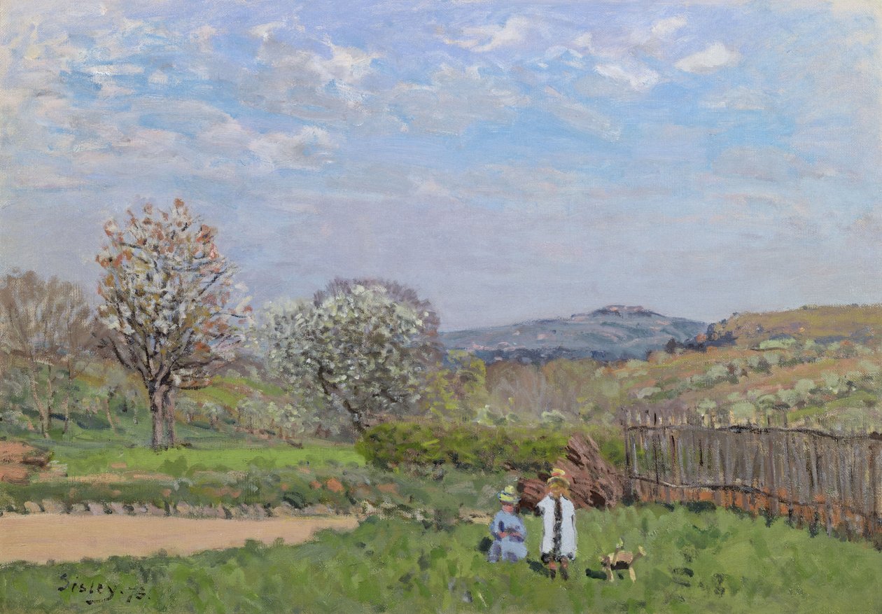Schnee in Louveciennes, 1878 Die Moret-Brücke im Sommer Frühling in der Umgebung von Paris, Apfelblüte, 1879 Die Seine bei Suresnes, 1877 Die Überschwemmung in Port-Marly Schneeeffekt in Argenteuil Das Kornfeld (bei Argenteuil) Frühling in Moret-sur-Loing Wiese, 1875 Wiese Die Seine bei Point du Jour, 1877 Die Rast am Bachufer Juni-Morgen in Saint-Mammès Morgen in der Nähe des Loing; Matin près du Loing, 1879 Eine Ecke des Waldes bei Sablons