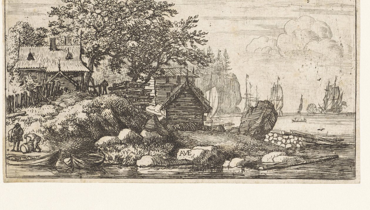 Flusslandschaft mit zwei Ruderbooten(Rivierlandschap met twee roeiboten Rotslandschap aan zee)Allaert van Everdingen(print maker) |
