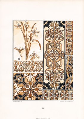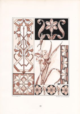 Narzissenmotive und geometrische Ornamente in Rosatönen(Narcissus Motifs and Geometric Ornaments in Rose Tones (litho))Arnold Lyongrün |