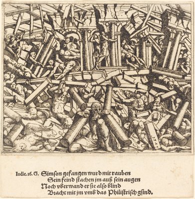 deutschland · gebäude · leute · mann · mann · männer · zerstörung · stark · fromm · deutsch · künste · land · fall · religion · bügel · körper · körper · kunst · richter · kerl · stärke · washington · christentum · spalte · pfosten · pfosten · judentum · jüdisch · position · gefallen · jahrhundert · zeichnung · galerie · fallen · biblisch · konzept · einstürzen · einsturz · eingestürzt · zerstören · demolieren · kunstgalerie · altes testament · schwarzes u. weiß · schwarzes und weiß · samson · nationale galerie der kunst · 16. jahrhundert · hebräische bibel · sechzehntes jahrhundert · etching · augustin hirschvogel · biblical character · hirschvogel · augustin · hirsvogel · augustin · philistines · art centre · heritage art · print · pulling down · Heritage Art/Heritage Images