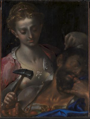 Jael tötet den Kommandanten der kanaanitischen Armee, indem sie einen Zeltpflock in seine Schläfe treibt(Jael kills the Commander of the Canaanite army by driving a tent peg into his temple)Bartholomaeus Spranger |