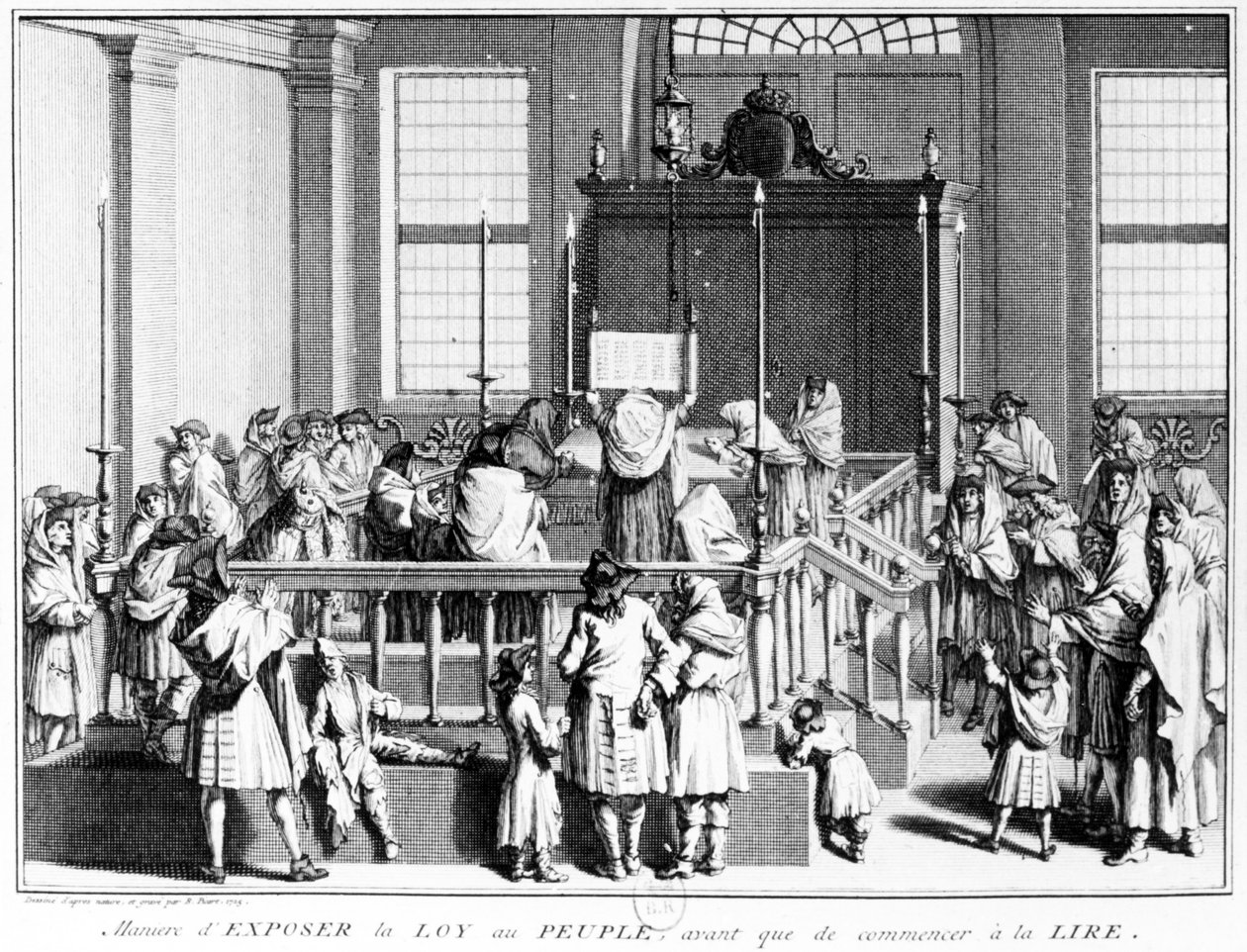 Das Gesetz den Menschen in der Synagoge zeigen, bevor das Lesen beginnt, 1725 von Bernard Picart