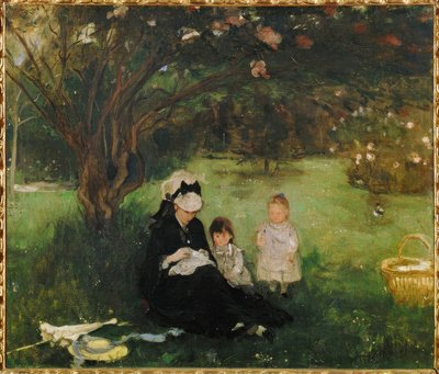 blume · blüte · damenmode · familie · flieder · französische · kunst · frau · frauenkunst · frauenleben · garten · garten · park · freien · allgemein · impressionismus · kind · kinderleben · kleidung · allgemein · korb · kunst · landschaft · mensch · menschen · garten · menschen · park · mode · mutter · kind · mütze · park · rast · sonnenschirm · spaziergang · geographie · frankreich · maurecourt · technik · gemälde · malerei · öl · auf · leinwand · Lilas · Maurecourt · / akg-images
