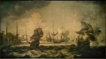 Schlacht der spanischen und niederländischen Flotte im Mai 1573, zur Zeit der Belagerung von Haarlem Englische Schiffe kommen bei frischer Brise vor Anker Schiffe und Boote auf dem Meer Niederländische Flotte der Ostindien-Kompanie Die Schlacht von den Downs Die Schlacht von Lowestoft, 3. Juni 1665, zeigt HMS Die Schlacht von Ter Heijde Die Brederode vor Hellevoetsluis, Mitte des 17. Jahrhunderts Die niederländische Flotte der Indien-Kompanie, 1675 Manöver zwischen britischen (rechts) und spanischen Schiffen, die Boote nähern sich einander, sahen schwer beladen aus, wahrscheinlich mit Soldaten Die Schlacht bei Terheide Kampf in der Nordsee im 17. Jahrhundert Schlacht der Kardinäle 1759 Die Schlacht von Scheveningen, 31. Juli 1653, ca. 1654 Episode aus der Vier-Tage-Schlacht, 11.-14. Juni 1666, des Zweiten Englisch-Niederländischen Krieges, 1665-67 Niederländischer Flügel der Indien-Kompanie. Eine Aktion der Vier-Tage-Schlacht Eine Seeschlacht zwischen Holländern und Engländern Die Schlacht von Terheide, 1653-1666 Unbekanntes Bild Das Zusammentreffen von d Seeschlacht