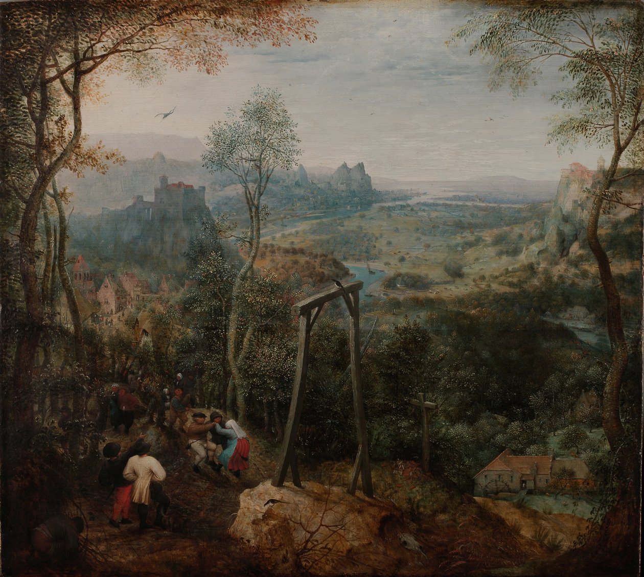 Die Elster auf dem Galgen von Bruegel. Verfügbar als Kunstdruck auf Leinwand, Fotopapier, Aquarellkarton, Naturpapier oder Japanpapier.