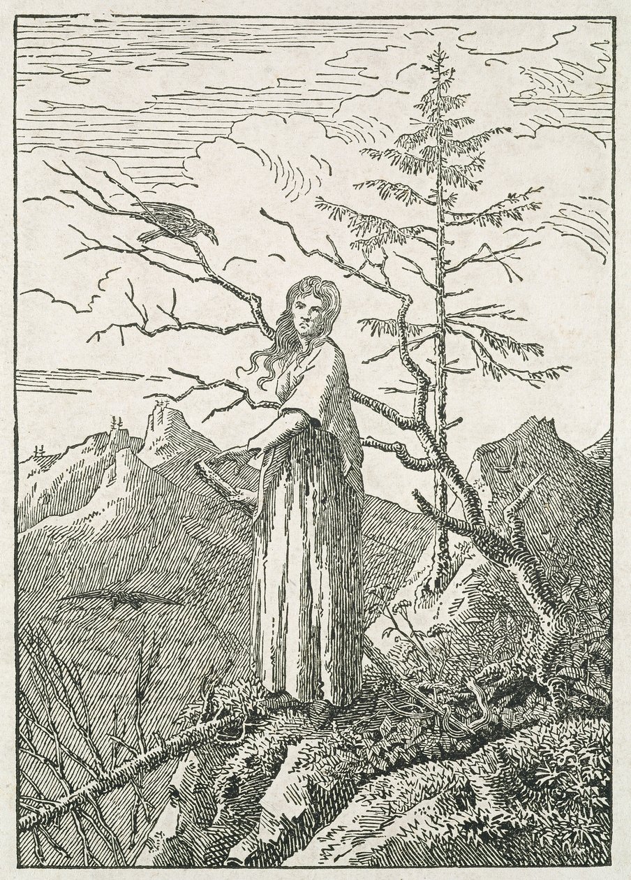 weiblich · vogel · abgrund · abgrund · bergig · berg · schal · bauer · selbstmord · selbstmord · gefahr · gefährlich · hexe · wahnsinn · instabil · verrückt · romantisch · Hamburger Kunsthalle, Hamburg, Germany / Bridgeman Images