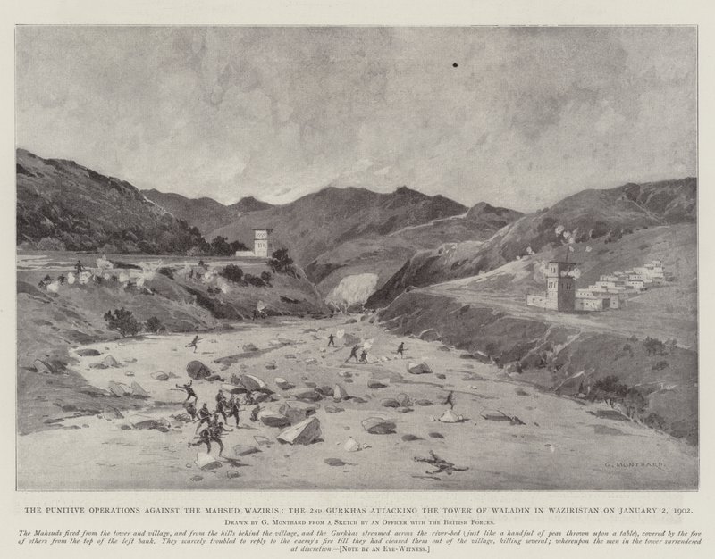 Die Strafoperationen gegen die Mahsud Waziris, die 2. Gurkhas greifen den Turm von Waladin in Waziristan am 2. Januar 1902 an(The Punitive Operations against the Mahsud Waziris, the 2nd Gurkhas attacking the Tower of Waladin in Waziristan on 2 January 1902 )Charles Auguste Loye |