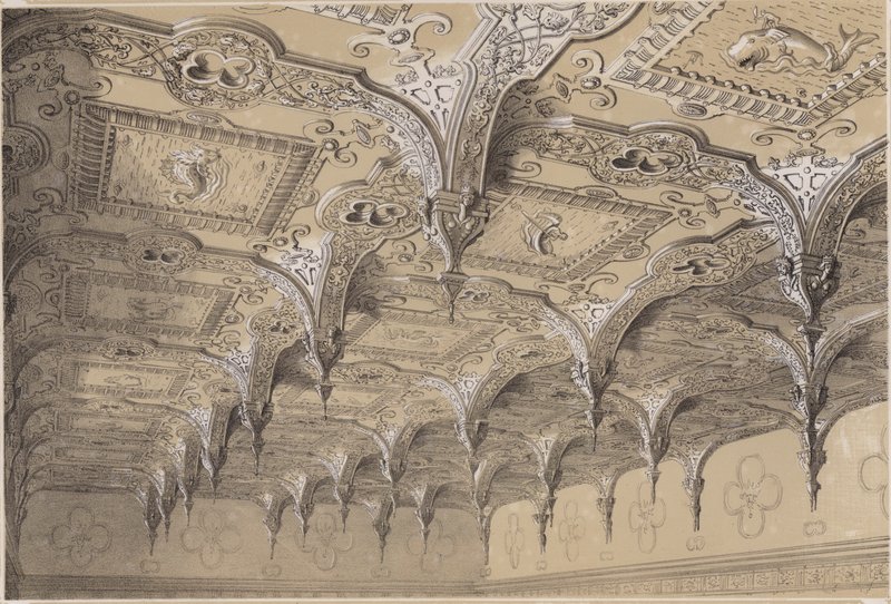 Melton Constable, Decke des Salons Eine große illusionistische Decke Decke in den Fuggerhäusern, Augsburg Islamisches und maurisches Design für einen Türteppich, aus Maßwerk von Gewölbedecken (Gravur) Illusionistische Deckendekoration Bemalte Decke, Mitte des 18. Jahrhunderts Entwurf für die bemalte Dekoration einer Kassettendecke mit dem Monogramm: H, 1830-97 Innenraum der neuen Synagoge, Great St Helens, London Thorpe Hall, Peterborough, Decke des Speisezimmers Skizze für die Galerie Lobau, Hôtel de Ville, Paris: Ornamentales Projekt für eine Kuppel Belton House, Grantham, Decke des Treppenhauses Zwei dekorative Studien von Decken; Verso: Studien von Köpfen Boston House: Die Decke des Salons, Datum 1623 Bühnenbild für Le Corsaire von Adolphe Adam (1803-56) Die Decke des Esszimmers Decke des Salons Entwurf für die Decke des Grand Salons, Hôtel Hope, 1867 Theaterbühne und Auditorium mit Logen, späte 17. Jahrhundert Die Decke des Salons Innenraum des Arbeitszimmers für den König von Spanien in Paris Innenansicht des Großen Saals in der ägyptischen Halle, Piccadilly Zeichnung, Deckendekoration, Teatro Valle, Rom, 1821 Entwurf für eine Decke mit zwei Porträts und Fächerstützen an den Ecken, 19. Jahrhundert Das Innere des eleganten Musikzimmers (Rotunde) in den Vauxhall Gardens, London Bemalte Decke, Mitte 18. Jahrhundert Entwurf für die Dekoration der Decke einer Kapelle Bühnenbild, Inneres einer gotischen Halle Bühnenbild, Innenraum einer gotischen Halle