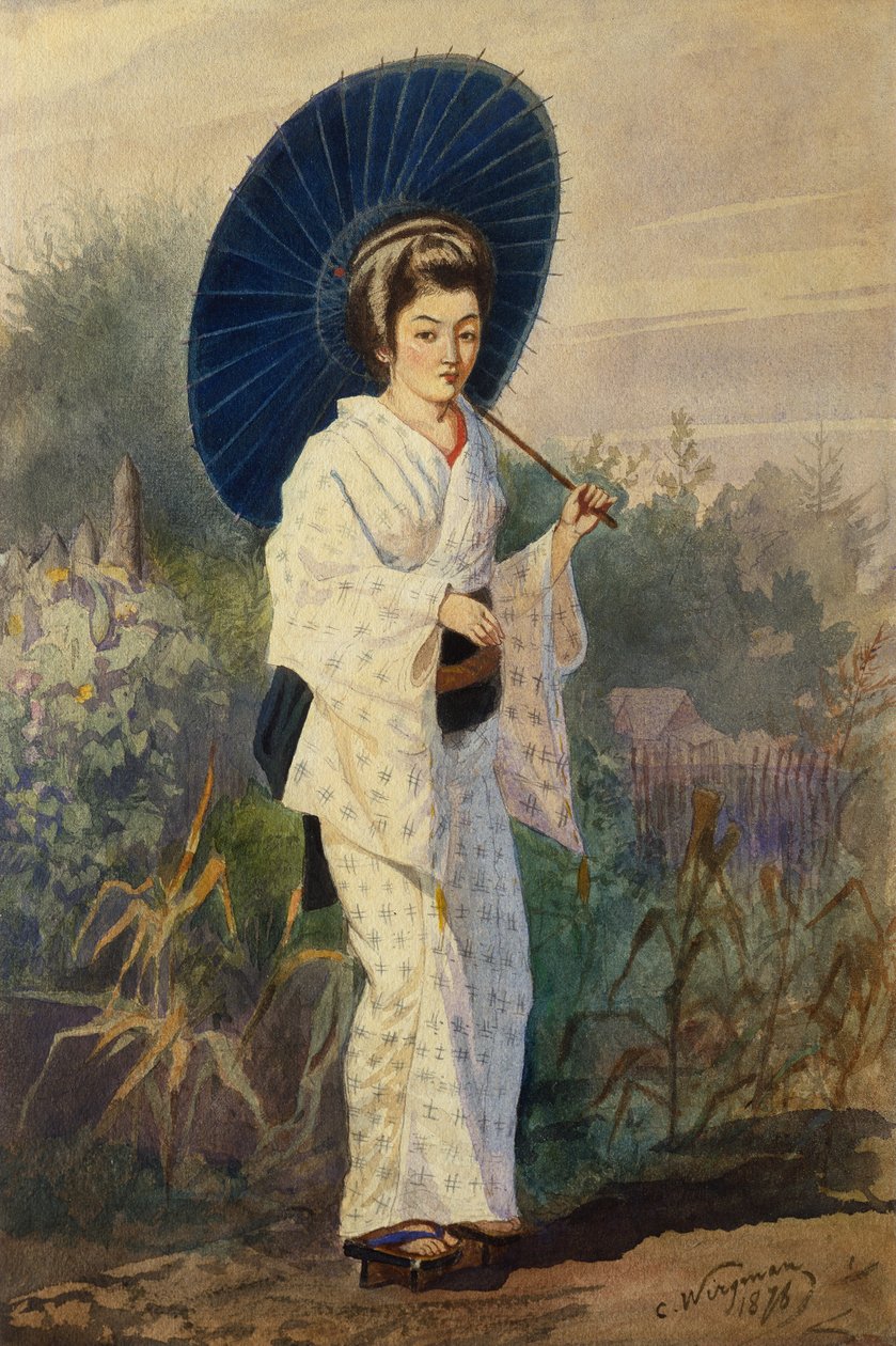 19. jahrhundert · 19. jahrhundert · xix. jahrhundert · xix. jahrhundert · neunzehntes jahrhundert · c19th · 19 19. xix xix. jahrhundert · 19 xixe xix xixe siècle · 19 neunzehntes neunzehntes neunzehntes jahrhundert · 19. jahrhundert · frühes xix. jahrhundert · spätes neunzehntes jahrhundert · kunst · kunst · landschaft · auf dem lande · grüne weiden · ländliche landschaft · ländliches motiv · ländliches gebiet · ländlich · ländliche region · ländliches leben · farbe · farben · farbe · farbig · farben · bunt · farbig · frau · feminin · damen · frauen · dame · w0männer · japan · japanisch · ainu · asien · asiaten · asiaten · asien · asiaten · asiatisch asiate · asiatische ethnizität · regenschirm · regenschirme · sonnenschirm · sonnenschirme · landschaft · landschaften · landschaft · landschaft · landschaften (darstellungen) · malerei · malerei · malerei · malerei · pflanze · pflanzen · zimmerpflanze · botanik · botanik · naturgeschichte · wissenschaft · wissenschaft · wissenschaftliche methoden · porträt · porträt · porträt · eine person · person · nur eine person · 1 person · außenansicht · außenansicht · aquarell · aquarell · mzgemälde · tracht · tracht · tracht · kleidung · kleidung · tuch · kleidung · tücher · kleidung · sommerkleidung · bekleidet · Private Collection / Bridgeman Images |