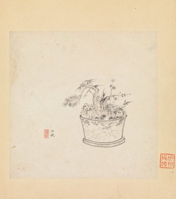 natur · baum · stilleben · betrieb · betriebe · künste · land · china · kunst · chinesisch · museum · position · jahrhundert · zeichnung · 17. jahrhundert · bonsais · farbe · getroffen · metropolitanmuseum der kunst · das metropolitanmuseum der kunst · bäume · still life · ink on paper · chen hongshou · hongshou · chen · ink on paper · heritage art · album of twelve paintings · album of twelve paintings · Heritage Art/Heritage Images