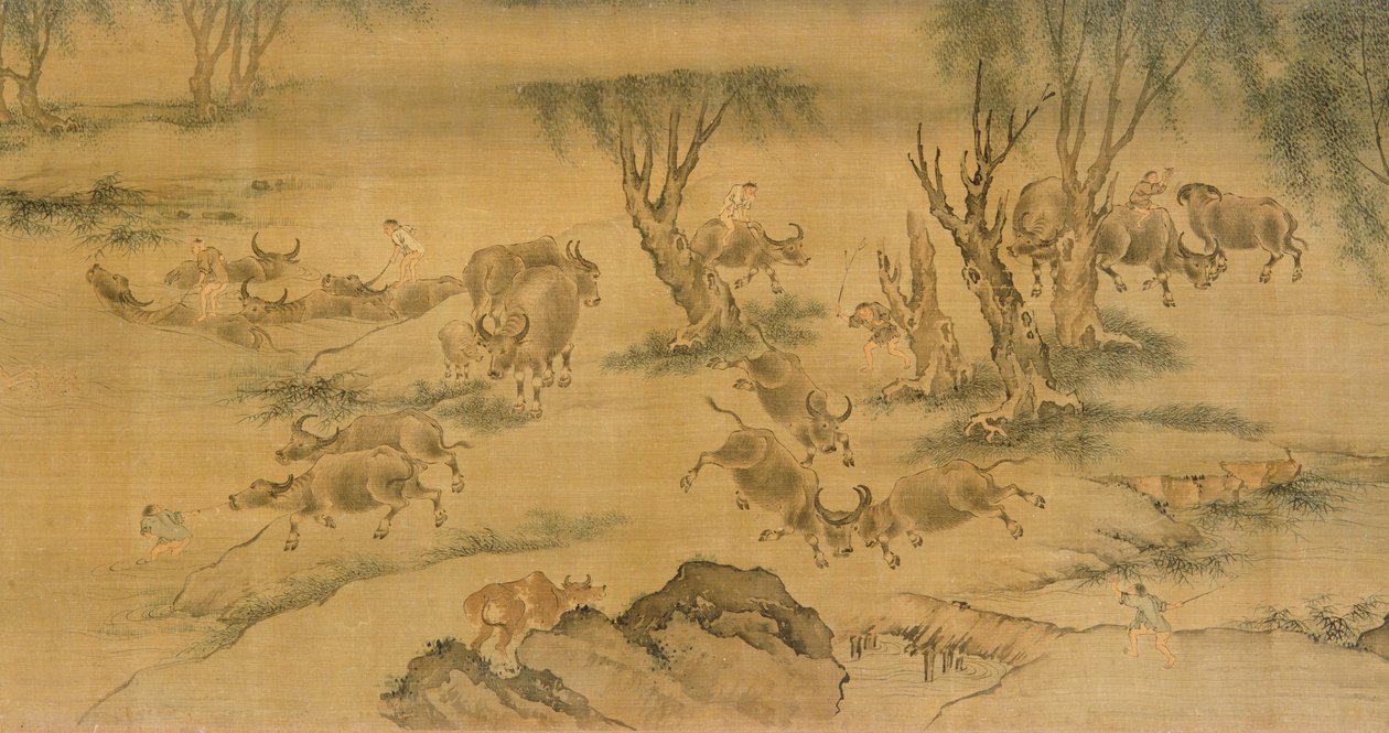 Wasserbüffel und Hirtenjungen, Chinesisch, 1368-1463(Water Buffaloes and Herd Boys, Chinese, 1368-1463 )Chinese School |