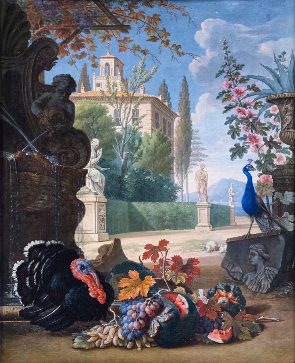 17. jahrhundert · 17. jahrhundert · xvii. jahrhundert · xvii. jahrhundert · siebzehntes jahrhundert · c17th · 17 17. xvii. xvi. jahrhundert · 17 17. 17. 17. xvii · deutschland · deutsch deutsch deutsch deutsch deutsch · deutschland deutsch · europa · europäisch · tier · tiere · architektur · kunst · kunst · kunstwerke · barock (kunst) · barockstil · barockkunst · kunstbewegung · kunststil · türkei · wilder truthahn · nutztier · vieh · nutztiere · vogel · vögel · blume · blumen · blumen · blumen · brunnen · obst · nahrung · gebäude · gebäude · garten · giardini · hinterhof · gärten · melone · pfau · pfauen · pfauenfeder · pfauenhähne · wassermelone · wassermelonen · gemälde · farbe · gemälde · pflanze · pflanzen · plantagen (pflanzen) · traube · trauben · johannisbeeren · rebe · reben · weinrebe · weinreben · weinbau · weinanbau · weinhandel · skulptur · skulpturen · vase · vasen · Palazzo Corsini, Gallerie Nazionali Barberini Corsini, Rome, Italy / Bridgeman Images