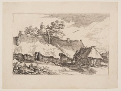 Bauernhof und kleine Scheune (Landschaften mit Bauernhöfen)(Boerderij en kleine schuur Landschappen met boerderijen (series title))Claes Jansz. Visscher (II)(print maker),Abraham Bloemaert(after drawing by),Boëtius Adamsz. Bolswert(after print by) |