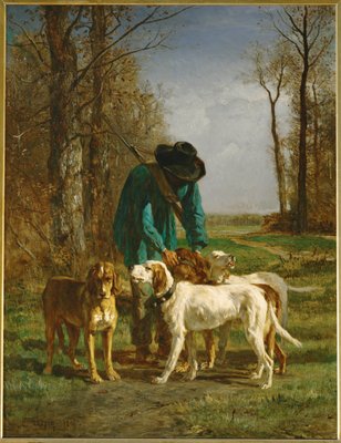 Garde-Chasse bei seinen Hunden(Garde-chasse arrete pres de ses chiens)Constant-Emile Troyon |