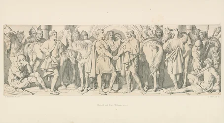 Harold und Herzog Wilhelm treffen sich, aus 'Die Geschichte der normannischen Eroberung', graviert von L. Gruner(Harold and Duke William meet, from 'The Story of the Norman Conquest', engraved by L. Gruner, 1866 )Daniel Maclise |