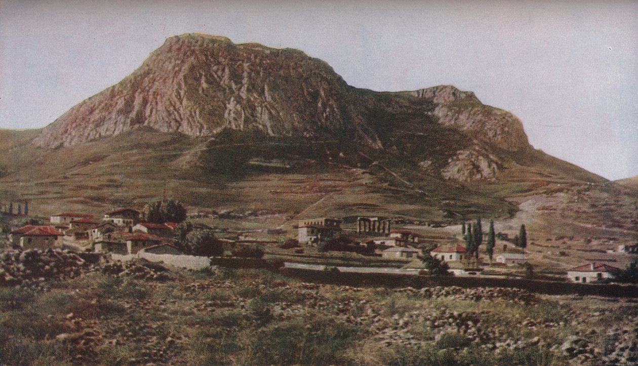 außen · draußen · hügel · grenzstein · fromm · land · religion · bügel · geographie · farbe · farbe · griechisch · korinth · griechenland · spalte · pfosten · pfosten · landschaft · position · jahrhundert · dreißiger jahre · peloponnisos · konzept · draußen · bügel von apollo · doric · publikation · dreißiger jahre · korinthos · 20. jahrhundert · historisch · royal geographical society · landscape · acrocorinth · e.n.a · geographical magazine · The Print Collector/Heritage Images |