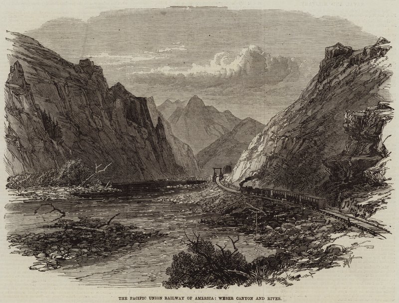 pacific union railway · amerika · weber canyon · weber river · vereinigte staaten · eisenbahnen · Private Collection / Bridgeman Images · / Look and Learn |