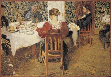 nahrung · innen · familie · haupt · anstrich · frankreich · mahlzeit · frieden · mittagessen · sittingraum · lebender raum · suppe · inländisches leben · familienleben · am tisch · genre · private collection · weekday · genre · in the room · covered table · family scene · vuillard · Édouard 1868-1940 · vuillard · Édouard 1868-1940 · Fine Art Images/Heritage Images