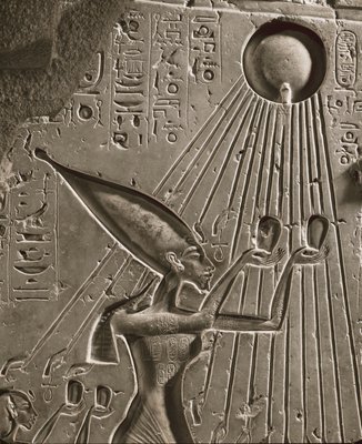 Die königliche Familie von Amenophis IV. Akhnaton opfert Aton, dem Sonnengott (Relief)(The royal family of Amenophis IV Akhnatonoffers a sacrifice to Aton, the sungod (relief))Egyptian 18th Dynasty |