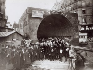 Blackwall Tunnel: Eine Gruppe von Arbeitern steht in der Luftschleuse, 1894(Blackwall Tunnel: a group of workers stand in the air lock, 1894 )English Photographer |