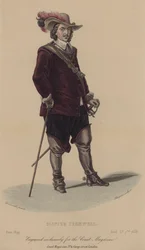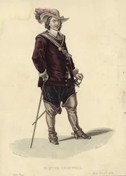 Oliver Cromwell, englischer Soldat und Politiker(Oliver Cromwell, English soldier and politician (coloured engraving))English School |