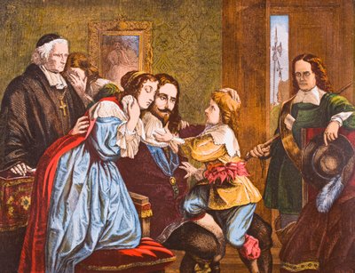 innere · abschied · auf wiedersehen · königliche familie · zum tode verurteilt · männlich · weiblich · sohn · tochter · weinen · weinen · priester · parlamentarier · 17. jh. · trauer · trauer · abschied · Private Collection / Bridgeman Images