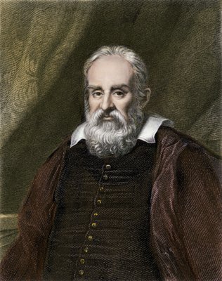 Wissenschaften und Wissenschaftler: Porträt von Galileo Galilei, italienischer Astronom (1564-1642)(Sciences and scientists: Portrait of Galileo Galilei dit Galilee, Italian astronomer (1564-1642). Colour engraving.)English School |