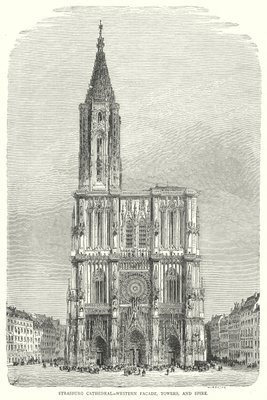 Straßburger Münster-Westfassade, Türme und Turmspitze (Gravur)(Strasburg Cathedral-Western Facade, Towers, and Spire (engraving))English School |