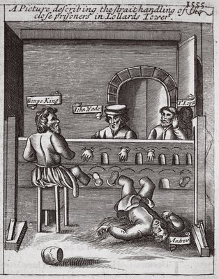 Ein Bild, das die strenge Behandlung der engen Gefangenen im Lollards Tower beschreibt(A picture describing the Strait handling of the close prisoners in the Lollards Tower)English School |