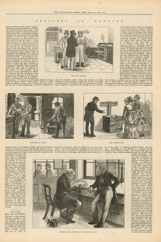 gefängnisse · gefangene · newgate · newgate gefängnis · london · flogging box · suppenküchen · seite · illustrierte londoner nachrichten · Private Collection / Bridgeman Images · / Look and Learn