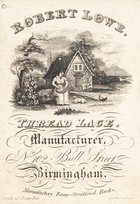 Robert Lowe, Spitzenhersteller, Visitenkarte(Robert Lowe, thread lace manufacturer, trade card )English School |