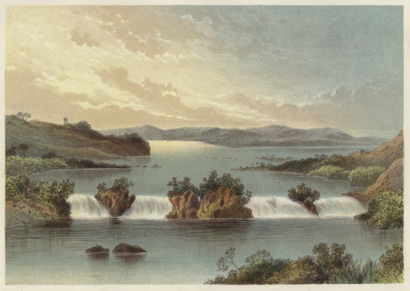 david livingstone · afrika · forscher · entdecker · erkundung · afrikanisch · afrikaner · abenteuer · viktoriasee nyanza · wasserfall · felsen · Private Collection / Bridgeman Images · / Look and Learn |