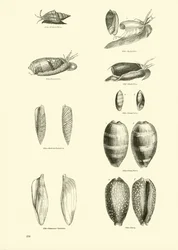 natur · natürlich · geschichte · tier · tiere · molluske · mollusken · siphonaria · ferussacs bullaea · patulous bullaea · globose bulla · adansons sormetus · meckels gasteroptera · fragile bulla · bulla mit gürtel · fleischiger lobaria · Private Collection / Bridgeman Images · / Look and Learn
