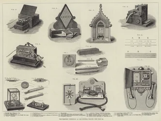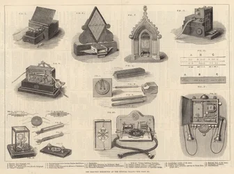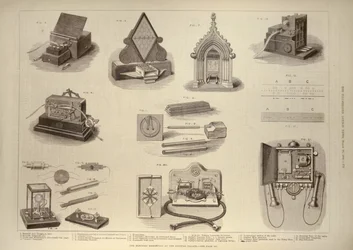 exponat · exponate · elektrizität · sender · telefon · fernschreiber · vakuumröhre · erfindung · Private Collection / Bridgeman Images