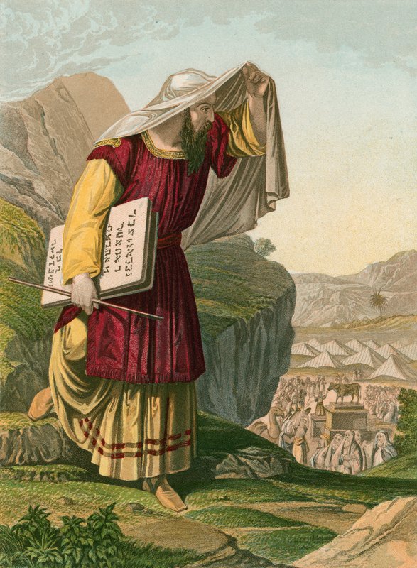 bibel · bibel · moses · der vom berg sinai herabsteigt · zehn gebote · goldenes kalb · götzenbilder · Private Collection / Bridgeman Images · / Look and Learn |