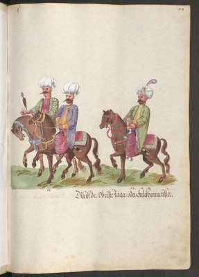 Personal der persischen Botschaft: Drei hochrangige Perser zu Pferd mit einem Begleiter(Personnel of the Persian embassy: three high-ranking Persians on horseback with a companion)Erich Lessing |