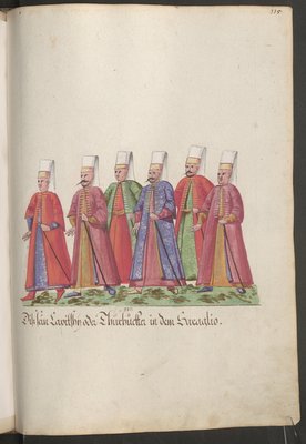 Bürger von Konstantinopel Der Serail der Sultanin: Eunuch mit zwei Dienern, die Pferdedecken tragen Personal der persischen Botschaft: Drei hochrangige Perser zu Pferd mit einem Begleiter Höflinge zu Pferd Oben: Hochzeitsprozession mit Braut hinter einem Vorhang Der Serail der Sultanin: Eunuchen Personal der persischen Botschaft: Persische Diener zu Pferd Hof des Sultans Der Hof eines Paschas und Sultans: zwei Kammerherren zu Pferd, einer mit einem Falken Der Hof des Sultans Der Hof eines Paschas und Sultans: Drei Knappen zu Pferd, zwei mit Falken Zwei türkische Grenzsoldaten mit Kopfschmuck, Streitäxten und Säbeln. Kostüme des sechzehnten Jahrhunderts aus Aga Janitschar und Bolluch Bassi Türkische Frauen Sieben Männer in Rot im Kreis versammelt Türkische Hochzeitszeremonie: Musiker mit Trompete und Trommel Der Serail der Sultanin: Eunuchen zu Pferd Javanische Hilfstruppen der Kompanie Gebäude in Konstantinopel: Ansicht des ersten Hofes des Palastes Kostüme des sechzehnten Jahrhunderts aus Persische Janitscharen, 1513 (Aquarell auf Papier) Der Hof des Sultans: zwei Knappen des Sultans zu Pferd Der Serail der Sultanin, schwarze Eunuchen zu Pferd Bürger von Konstantinopel beim Essen Türkische Hochzeitszeremonie: Musiker mit Schlaginstrumenten zu Pferd Gebäude der persischen Botschaft mit drei Türhütern