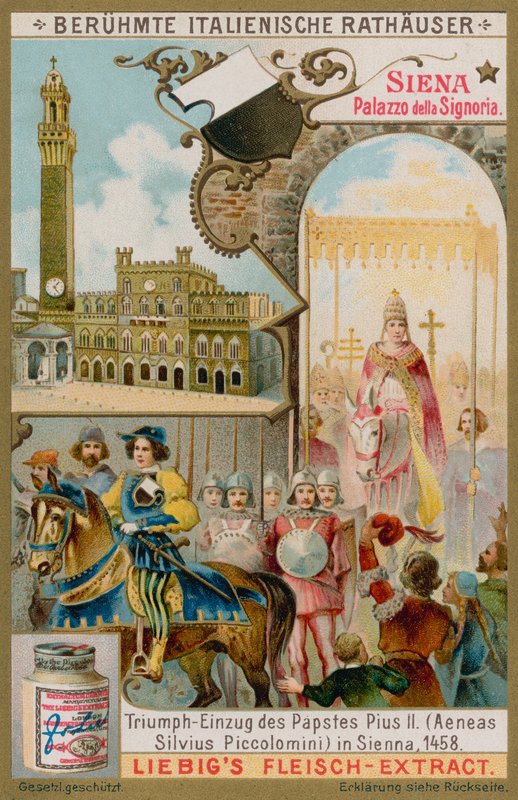 berühmter italiener · stadt · dorf · deutsche · gebäude · städte · hallen · kommunale · Öffentlichkeit · berühmt · szenen · palazzo della signoria · triumphierend · eintrag · papst pius ii. · sienna · Private Collection / Bridgeman Images · / Look and Learn |