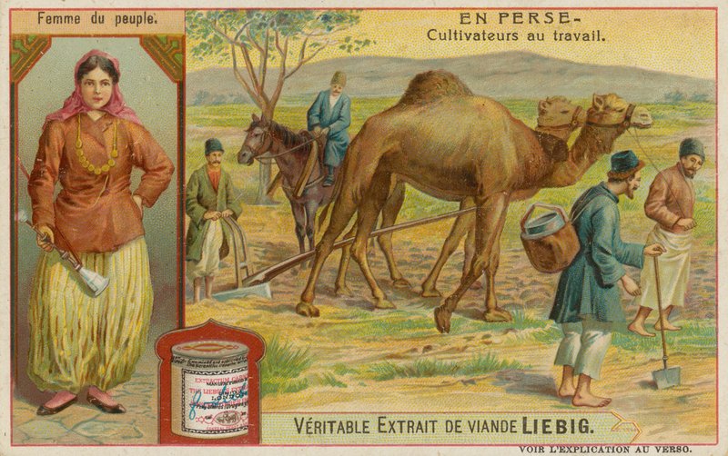 persien · persisch · menschen · stämme · arabisch · szenen · täglich · leben · zoll · frau · bauern · arbeit · kamel · pflügen · pflanzen · feld · ernte · kopftuch · traditionell · kleid · Private Collection / Bridgeman Images · / Look and Learn |