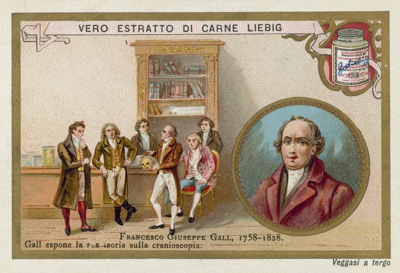 porträt · wissenschaft · wissenschaftler · lehrreich · karte · liebig · franz joseph gall · deutsche · 18. jahrhundert · 19. jahrhundert · erklären · schädel · kranioskopie · neuroanatomie · neuroanatom · physiologie · physiologe · gehirn · nervöses system · anatomie · medizin · Private Collection / Bridgeman Images · / Look and Learn |
