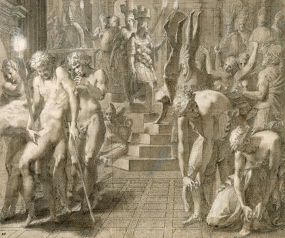 Die Maskerade von Persepolis. Zeichnung von Francesco Primaticcio, bekannt als Der Primatice (1504-1570)(The Persepolis Masquerade. Drawing by Francesco Primaticcio known as The Primatice (1504-1570))Francesco Primaticcio |