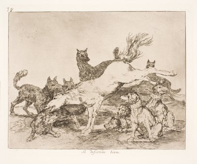 Er verteidigt sich gut. (Se defiende bien.), Bl. 78 aus der Serie Los desastres de la guerra (Die Schrecken des Krieges)(Se defiende bien. (He Defends Himself Well.), pl. 78 from the series Los desastres de la guerra (The Disasters of War))Francisco de Goya |