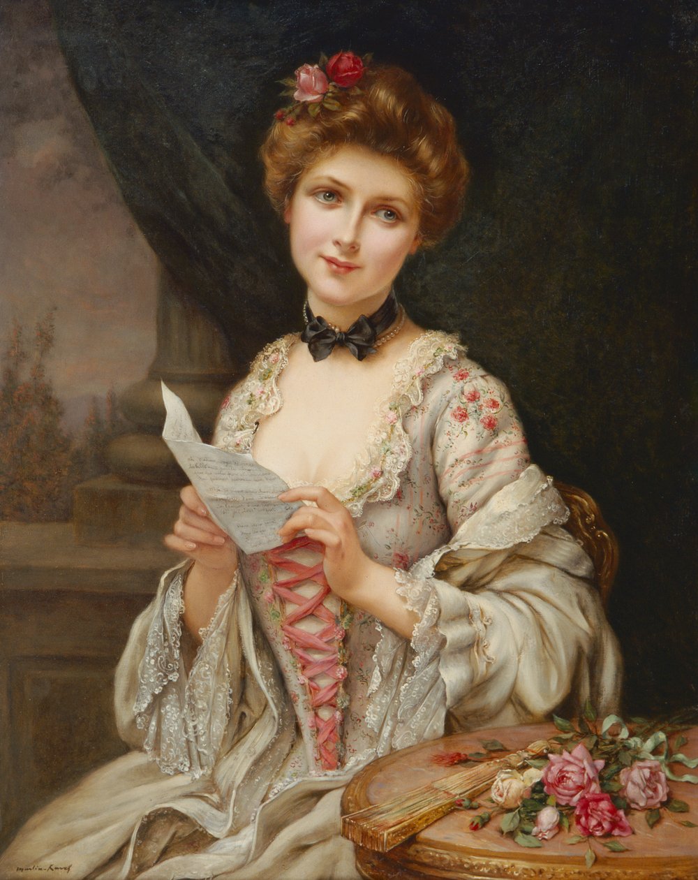 weiblich · rosen · korsett · süße note · kommunikation · korrespondenz · Porträt · Bourne Gallery, Reigate, Surrey, UK / Bridgeman Images |