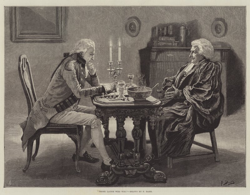 die lachen · die gewinnen · brettspiele · schachspieler · tische · stühle · schach · Private Collection / Bridgeman Images · / Look and Learn |